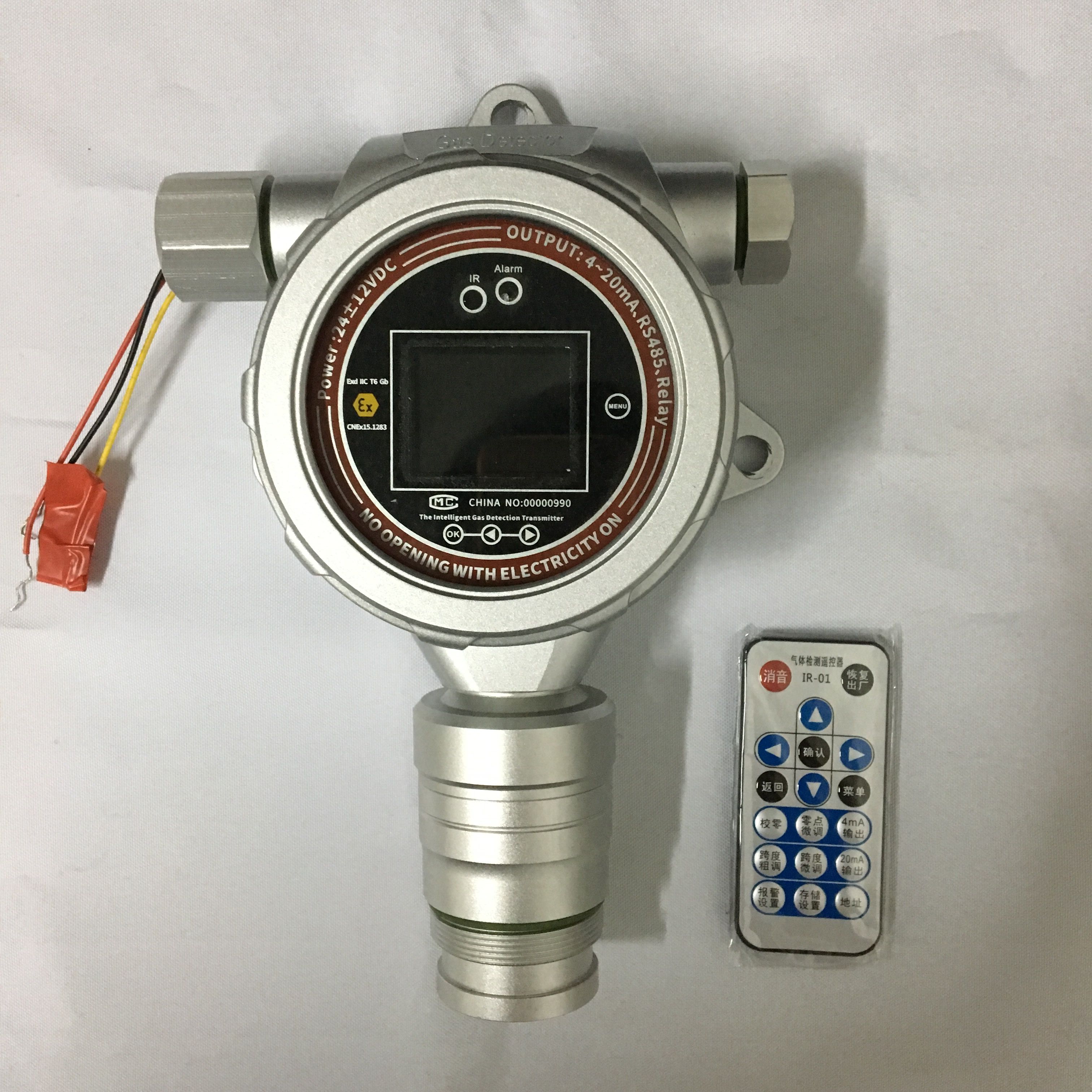 2. 标配红外遥控器,通过红外遥控器功能键可进行一键式操作,可实现在危险场合免开盖操作,比如:修改报警点、浓度校准、零点校准、消音、恢复出厂等功能。